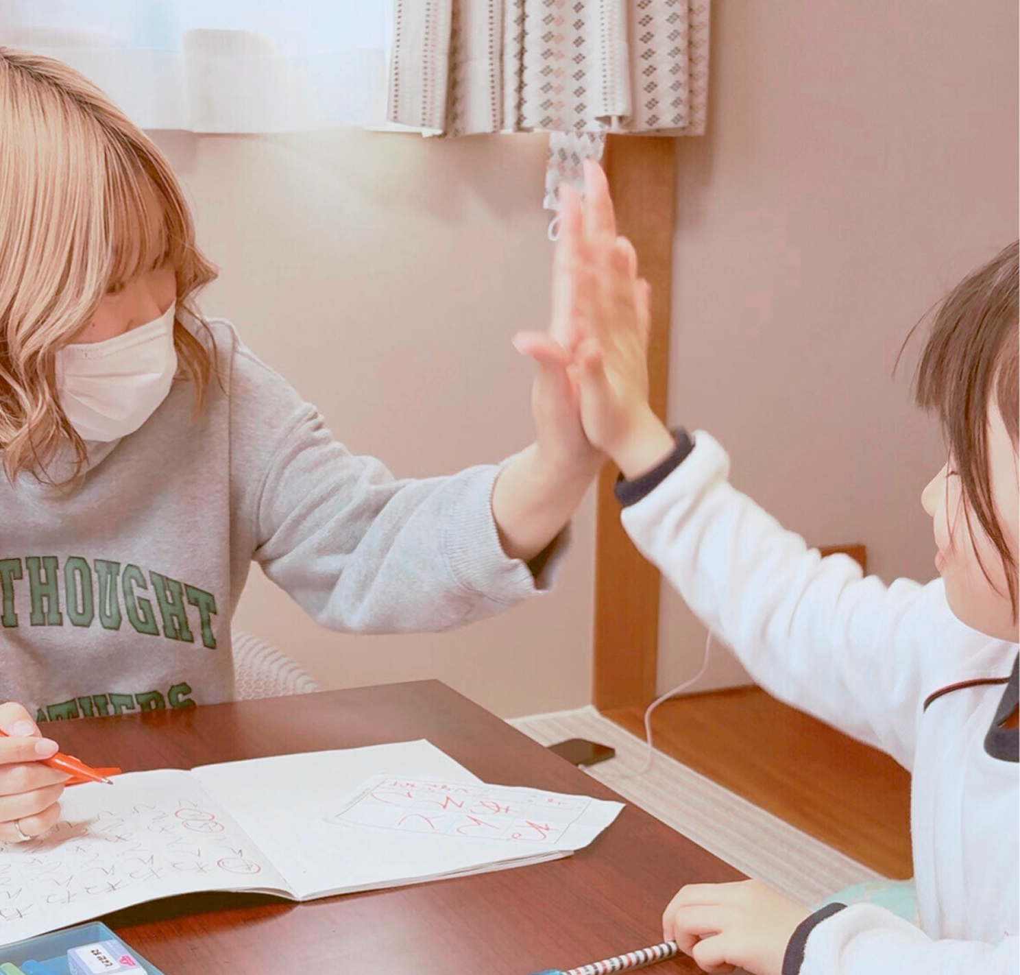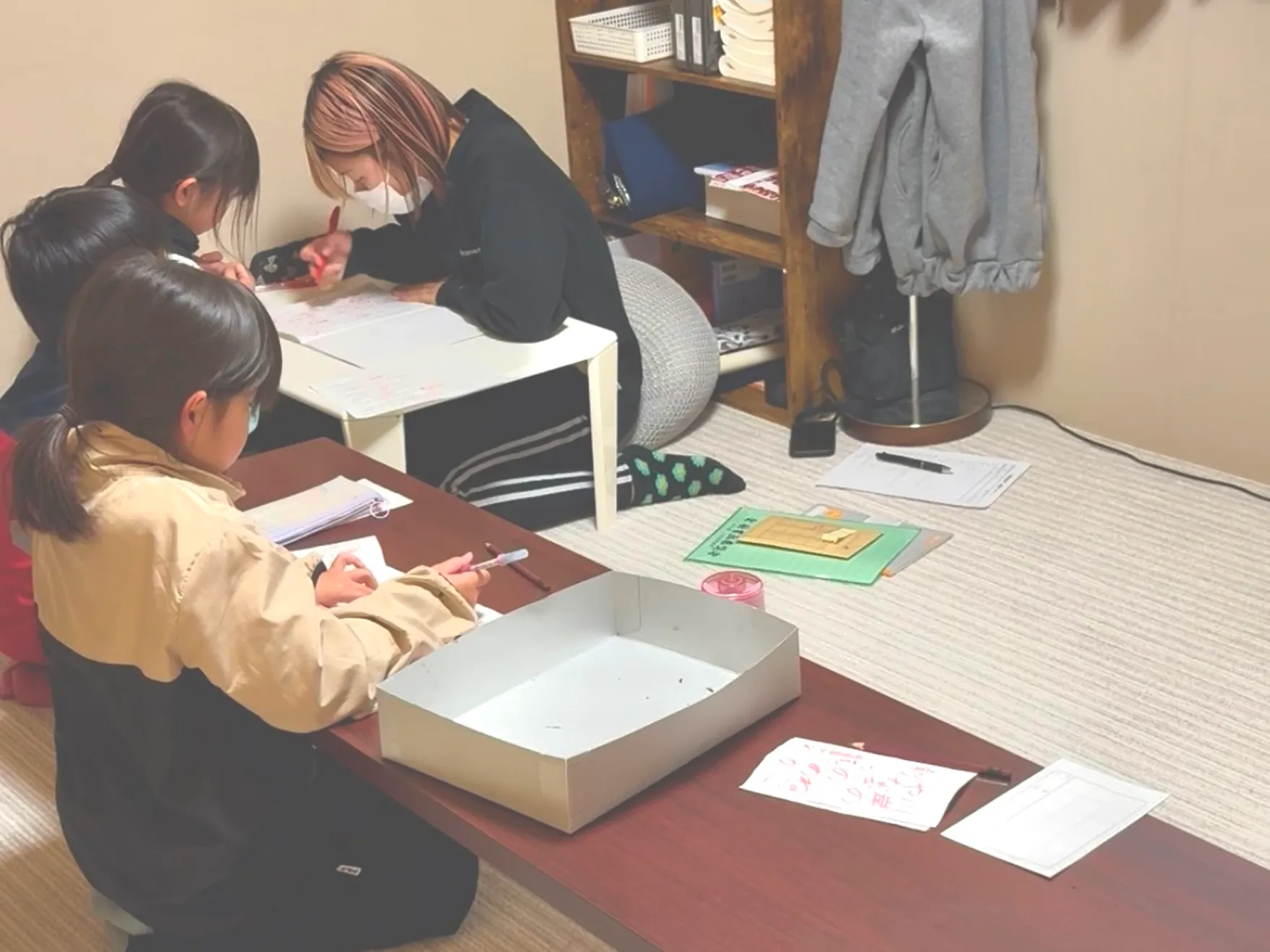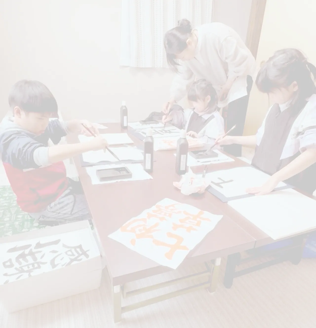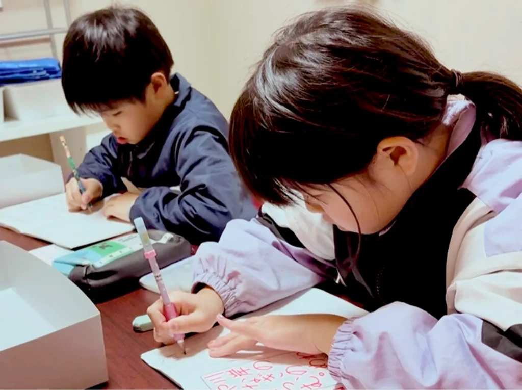 お友達と一緒に学ぶ中で、楽しく取り組める雰囲気を大切にしています。レッスン時間は1時間~1時間半を目安にしており、無理なく進めます。通っているうちに、少しずつ集中して書く力が自然と身についていきます。